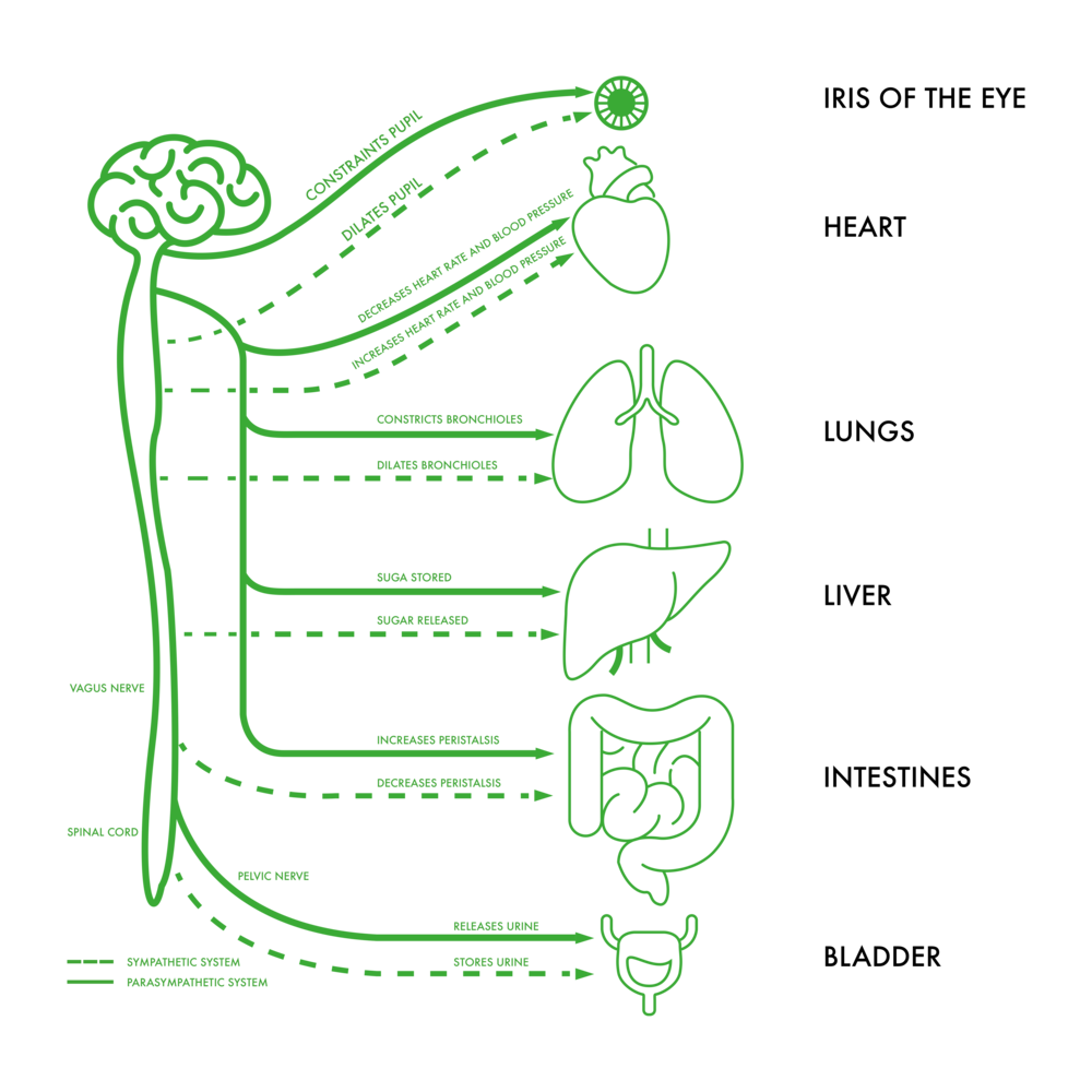 Nervous system: processes sensory information to and from the brain, activates body response to the brain, spinal cord and periphery nerves.